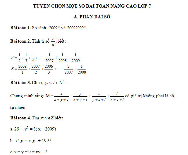 Bài tập toán nâng cao cho học sinh lớp 7