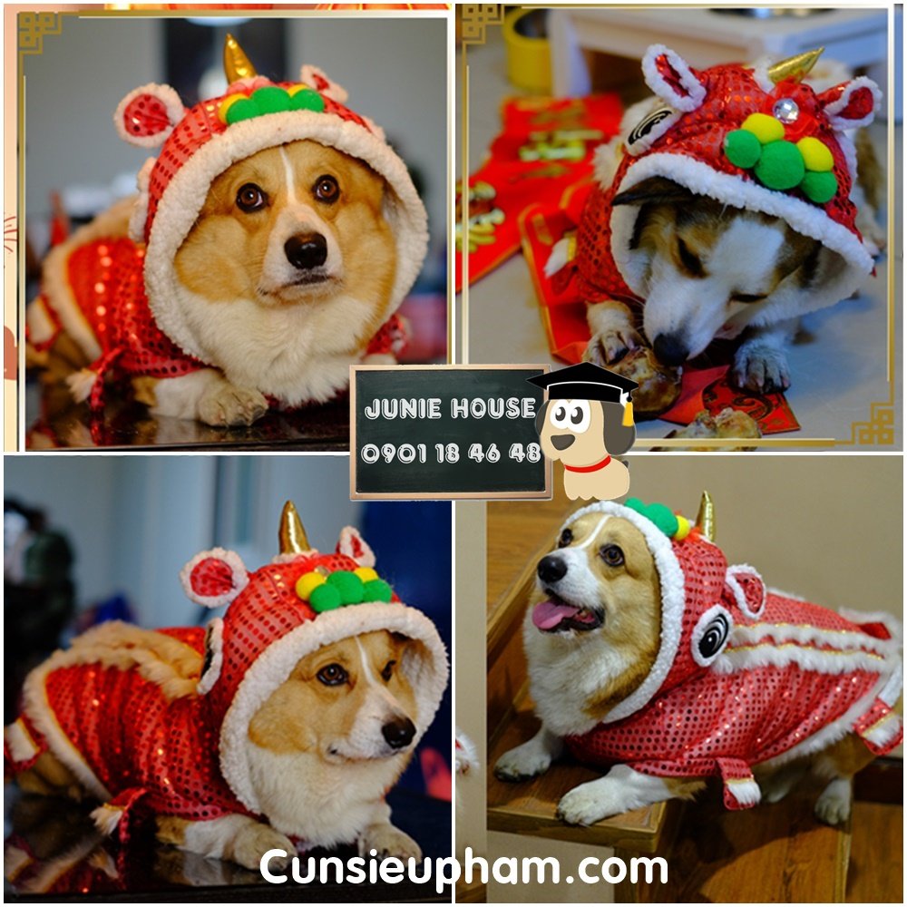 Mua online an toàn, giao nhanh, nhớ check size cho vừa cưng nhà nhé. Chó mặc đồ lân đi dạo Tết hay chụp ảnh là “xịn sò” lắm!