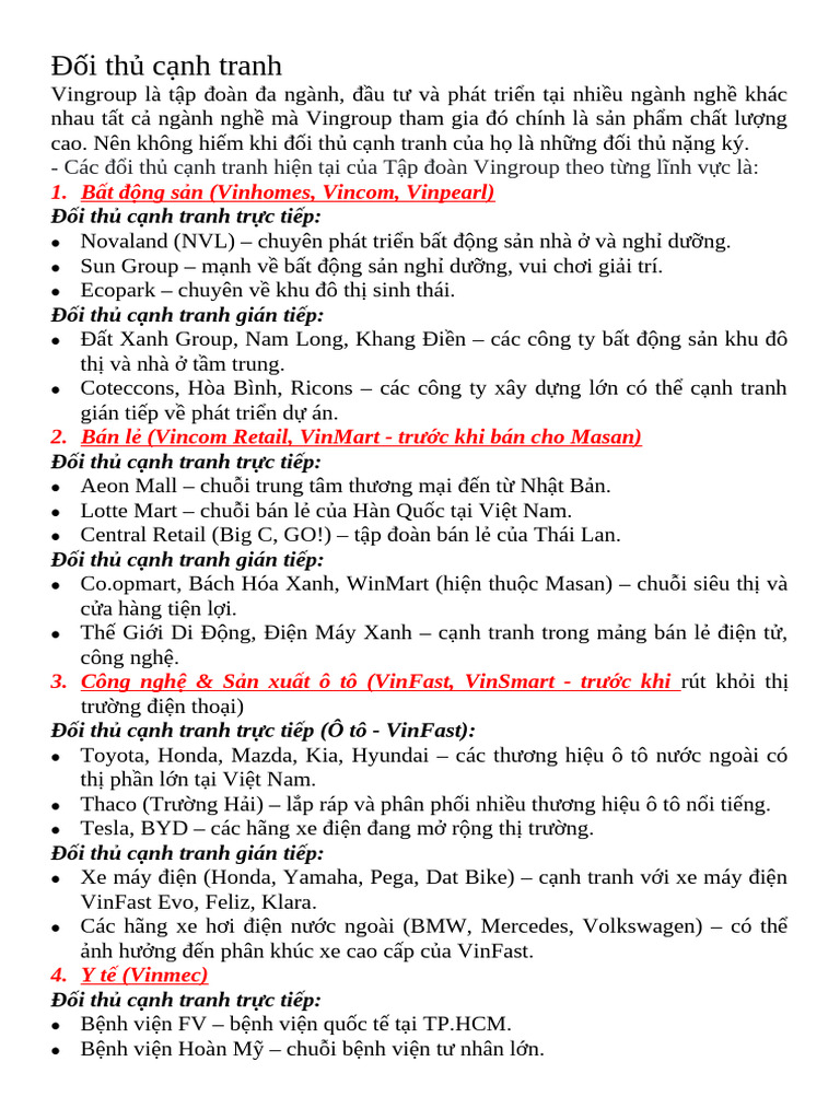 Trong bối cảnh thị trường bán lẻ ngày càng phát triển, VinMart không thể lơ là trước sự cạnh tranh khốc liệt từ các đối thủ như Thế Giới Di Động, Coopmart, hay các siêu thị trực tuyến như Shopee và Lazada. Để duy trì lợi thế cạnh tranh, VinMart cần không ngừng đổi mới và cải thiện chất lượng sản phẩm, dịch vụ, cũng như tạo ra những chương trình khuyến mãi hấp dẫn. Việc nắm bắt xu hướng tiêu dùng và đầu tư vào công nghệ sẽ là những yếu tố quyết định giúp VinMart khẳng định vị thế của mình trong lòng người tiêu dùng. Chỉ có như vậy, VinMart mới tiếp tục vững vàng trước làn sóng cạnh tranh khốc liệt này.