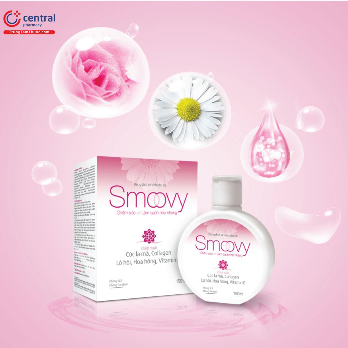 Dung dịch vệ sinh phụ nữ Smoovy là sản phẩm thế hệ mới, không chứa xà phòng và SLS, giúp làm sạch nhẹ nhàng cho cơ quan sinh dục ngoài cũng như niêm mạc và da nhạy cảm. Công thức dịu nhẹ của Smoovy không chỉ giúp làm sạch mà còn dưỡng ẩm, cải thiện tình trạng khô và tăng cường độ mịn màng cho vùng kín.