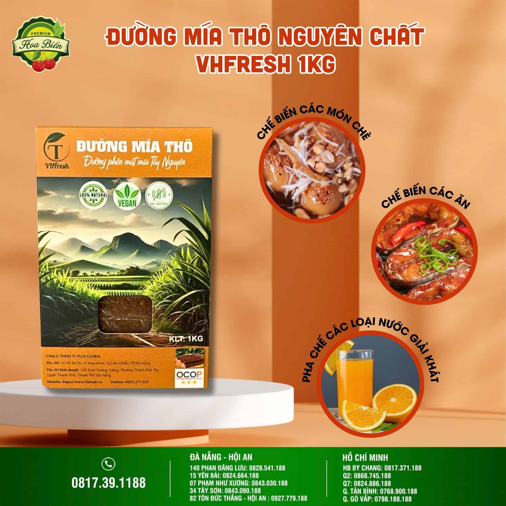 Đường mía thô VHFresh là sản phẩm hoàn hảo dành cho những ai yêu thích tự nhiên và an toàn. Được chế biến từ 100% nước mía nguyên chất, sản phẩm này giữ trọn được hương vị và chất dinh dưỡng nhờ phương pháp nấu thủ công truyền thống Tây Nguyên. Đặc biệt, đường mía thô không chứa chất bảo quản hay phẩm màu, mang đến sự yên tâm cho người tiêu dùng.