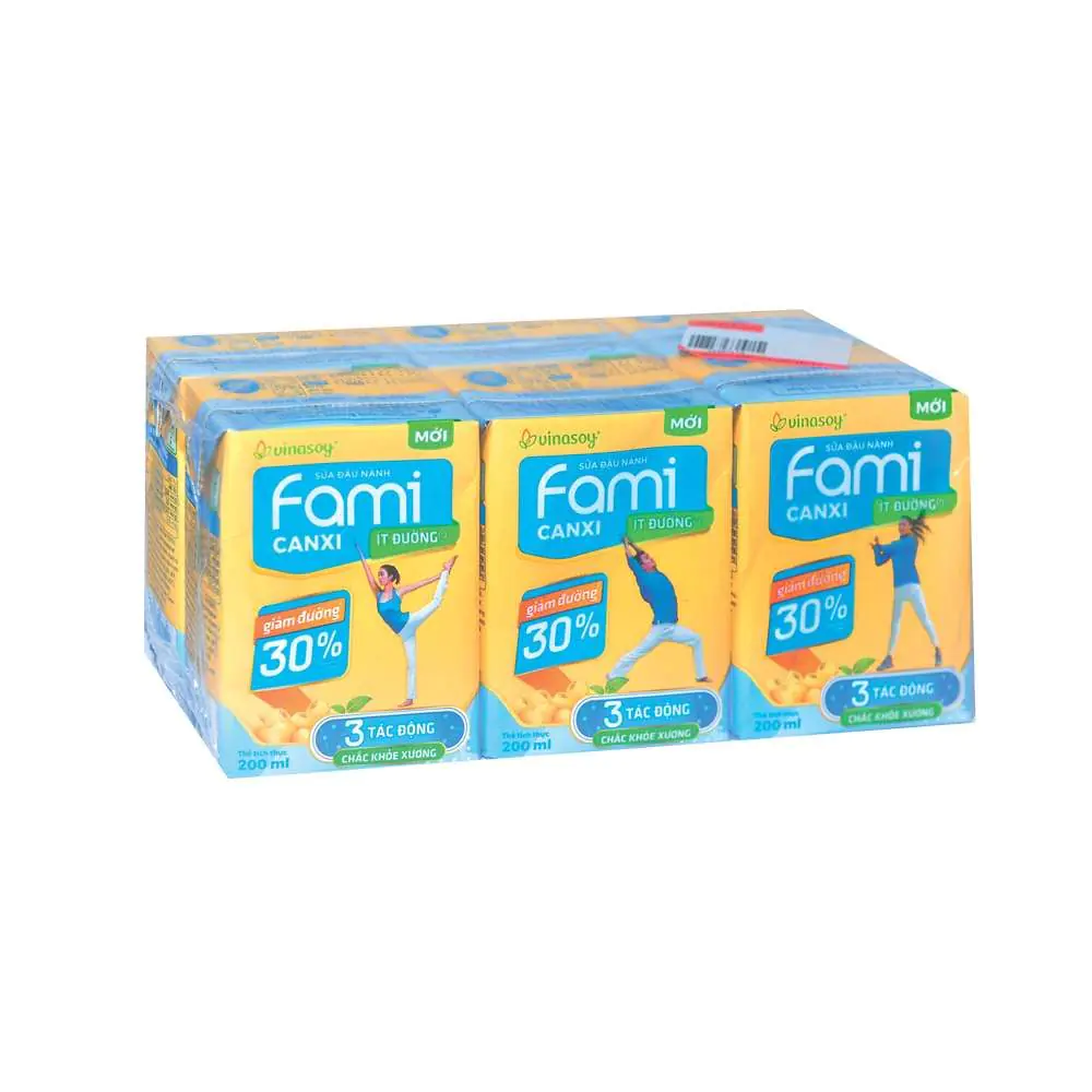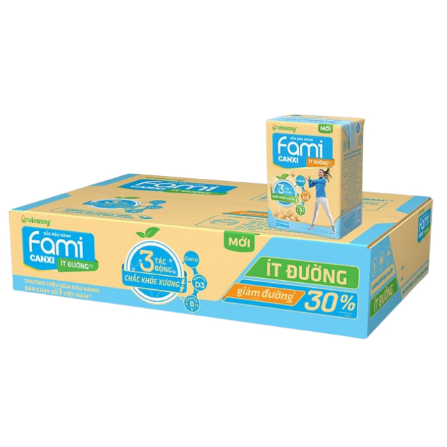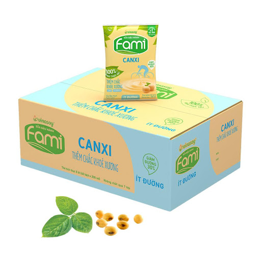Được làm từ 100% hạt đậu nành chọn lọc và bổ sung vitamin D3, Fami Canxi không chỉ giúp hấp thu canxi tốt hơn mà còn thích hợp cho những người muốn kiểm soát cân nặng. Lượng calo trong mỗi 100ml sữa Fami Canxi Ít Đường chỉ khoảng 48.4, giúp bạn thưởng thức hương vị thơm ngon mà không cần lo lắng.