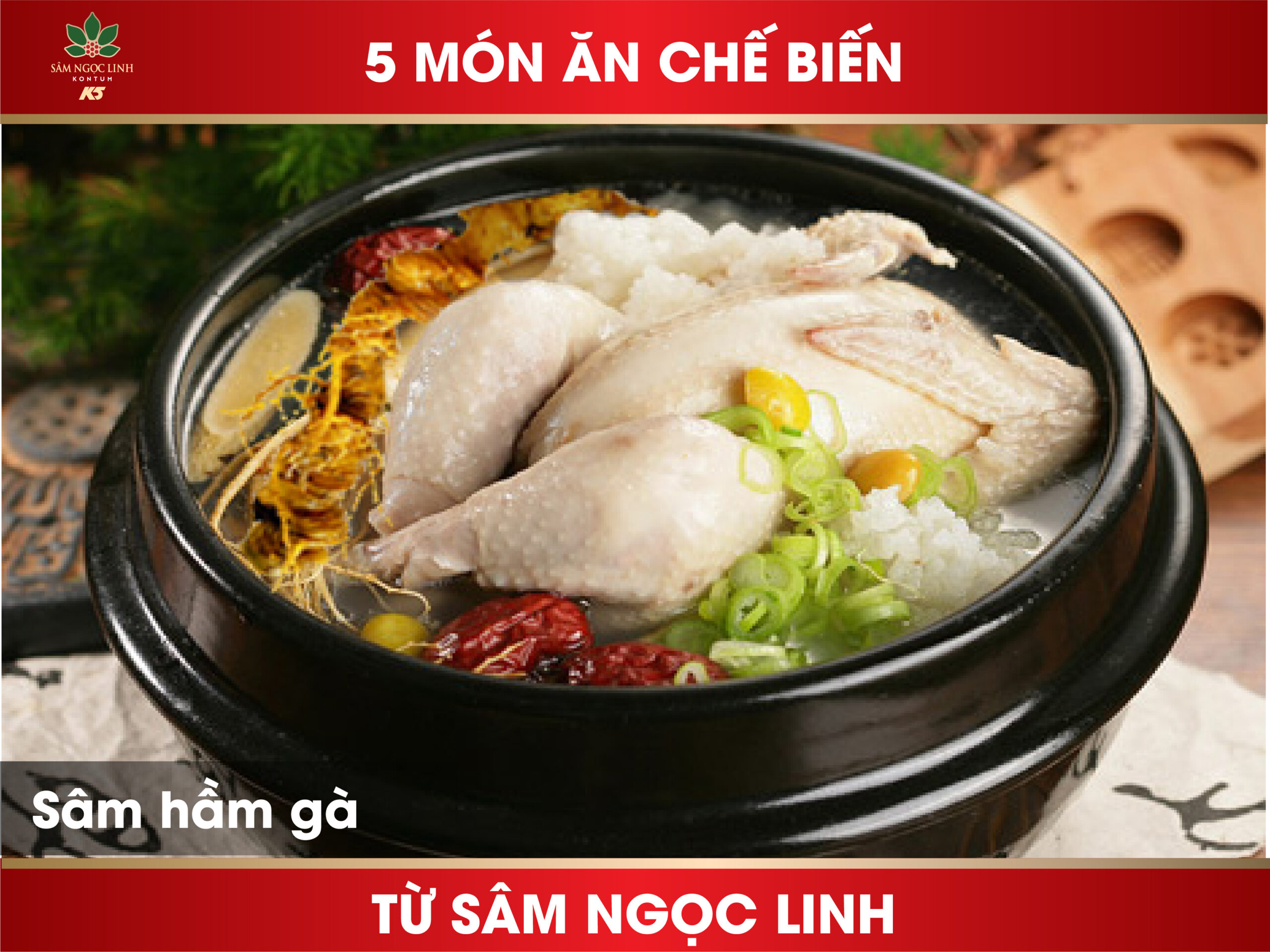 Gà hầm sâm Ngọc Linh là món ăn bổ dưỡng, kết hợp giữa thịt gà thơm ngon và sâm Ngọc Linh quý hiếm – dược liệu được mệnh danh là “quốc bảo” của Việt Nam. Không chỉ hấp dẫn bởi hương vị, món ăn này còn nổi bật nhờ tác dụng bồi bổ sức khỏe, tăng cường đề kháng, phục hồi thể lực và hỗ trợ phòng ngừa nhiều bệnh tật. Để hiểu rõ hơn về công dụng, cách chế biến, nguyên liệu cần chuẩn bị cũng như những lưu ý khi thưởng thức gà hầm sâm Ngọc Linh, hãy cùng khám phá qua bài viết dưới đây.