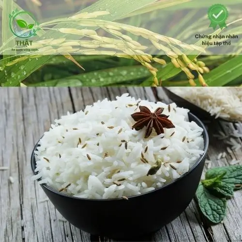 Khi cơm đã chín, bạn hãy để nồi cơm nghỉ khoảng 10 phút trước khi mở nắp. Việc này giúp hạt gạo ngấm đều nước và giữ được độ ẩm. Cuối cùng, dùng đũa xới nhẹ cơm để không bị dính, bạn sẽ có đĩa cơm thơm ngon, mềm mại, sẵn sàng cho bữa ăn gia đình. Gạo Thái không chỉ thơm mà còn mang đến hương vị ngọt đậm đà, chắc chắn sẽ làm hài lòng mọi người.