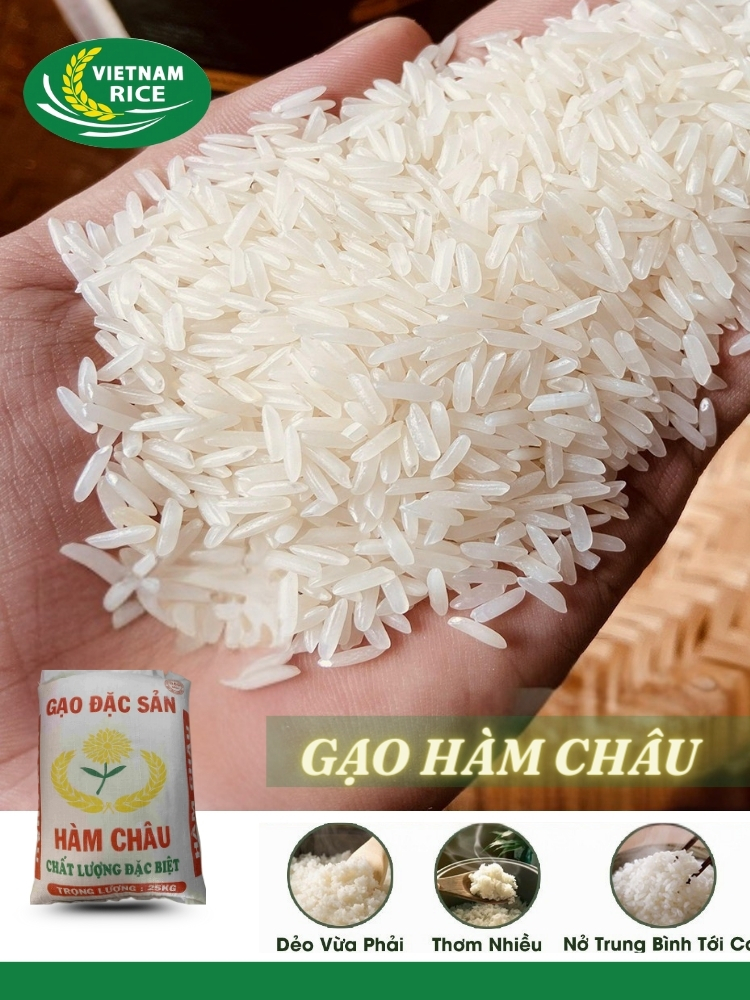 Đặc điểm nổi trội của gạo Hàm Châu là tính xốp và độ nở cao, nên không chỉ dùng để nấu cơm mà còn phù hợp để làm các món như cơm gà hay cơm chiên. Gạo tấm Hàm Châu cũng rất được ưa chuộng, với hạt nhỏ, màu trắng trong và vị ngọt nhẹ, mang đến cảm giác dễ chịu cho người dùng.