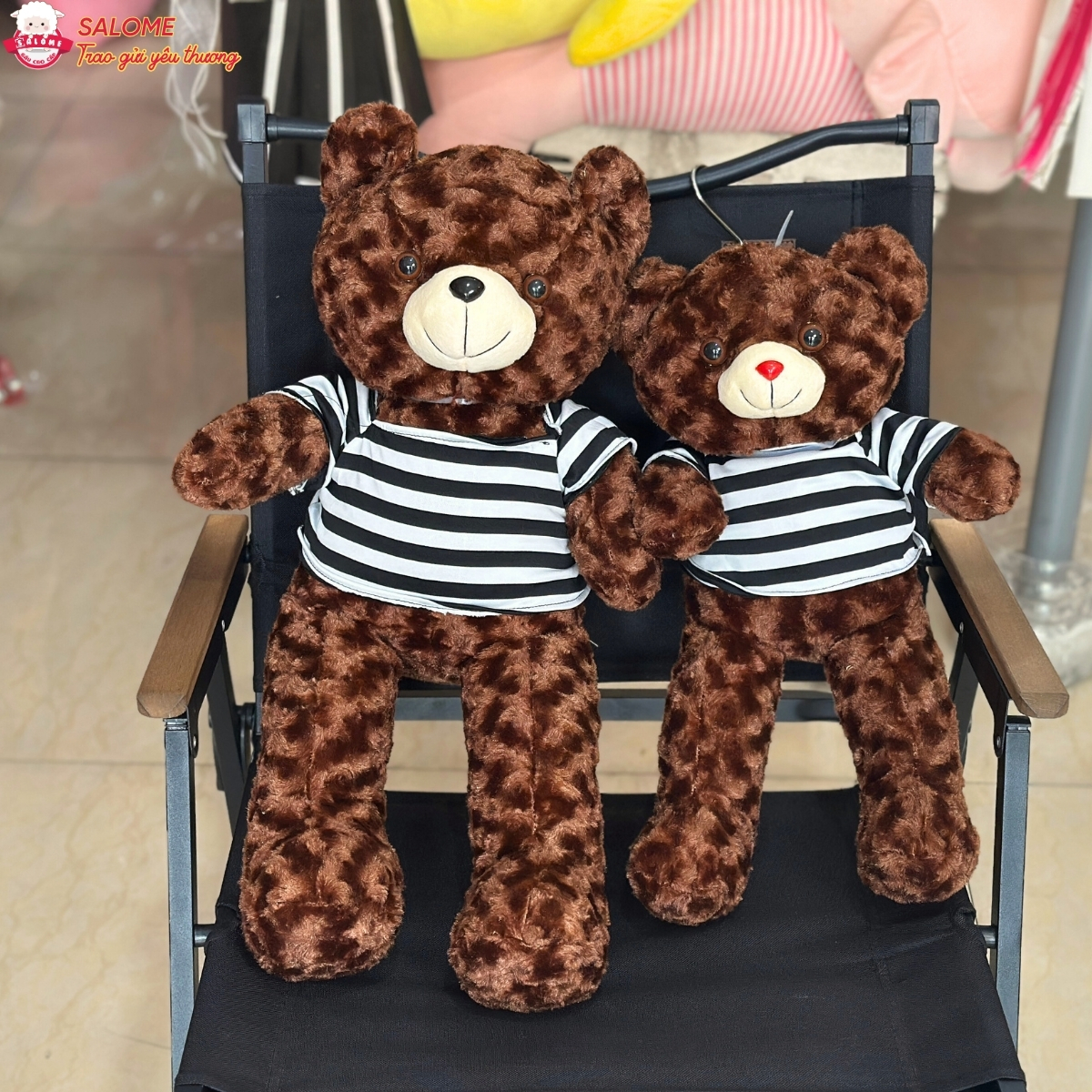 Ngoài ra, gấu bông còn có rất nhiều kích thước khác nhau, từ 30 cm đến 2m5, mỗi kích cỡ lại mang đến một trải nghiệm khác biệt. Gấu nhỏ (20-30 cm) sẽ dễ dàng mang theo bên mình, trong khi gấu trung (40-60 cm) mang đến sự dễ thương và cũng không quá cồng kềnh. Bạn có thể tùy chọn kích thước dựa trên sở thích và không gian trưng bày của người nhận để món quà thêm phần ý nghĩa.