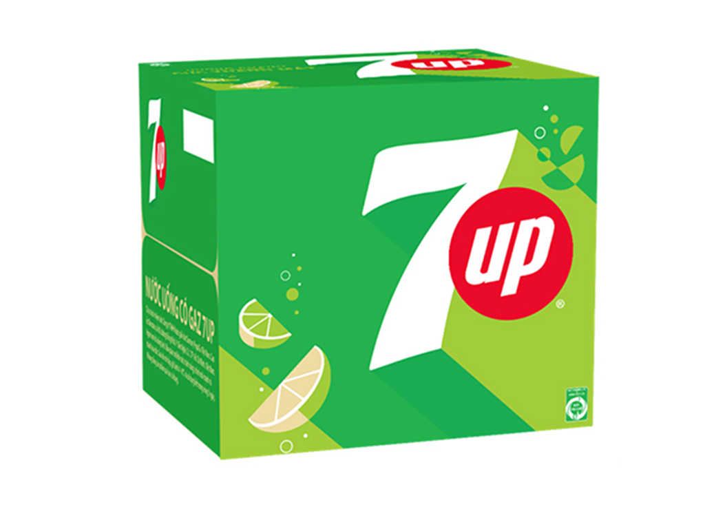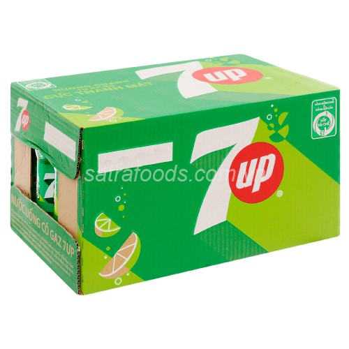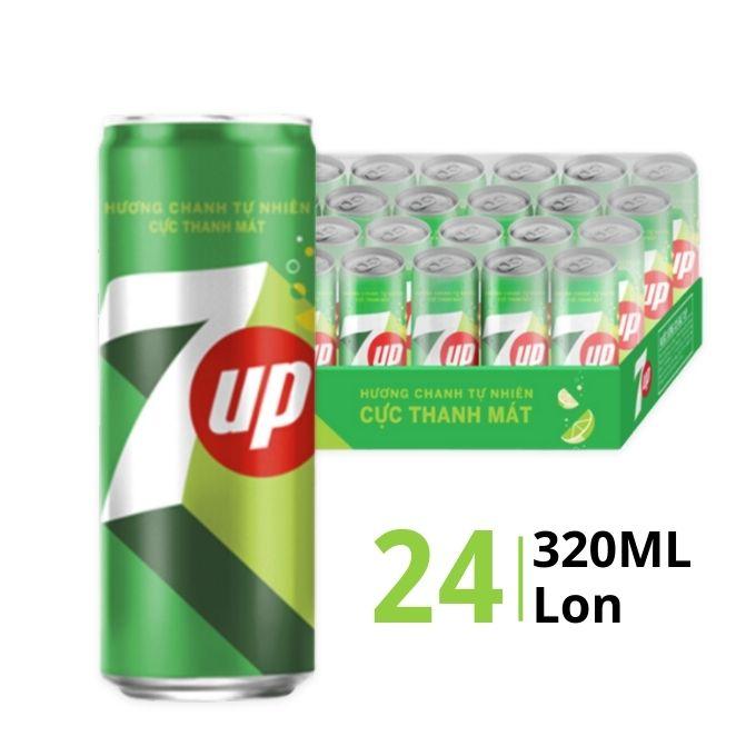 Thùng nước ngọt 7Up thường được đóng gói với quy cách phổ biến là 24 lon mỗi thùng. Mỗi lon có dung tích khoảng 235ml hoặc 320ml tùy loại, nhưng phổ biến nhất là lon 235ml vị chanh tươi mát, rất được ưa chuộng vì vừa đủ dùng và dễ dàng mang theo.