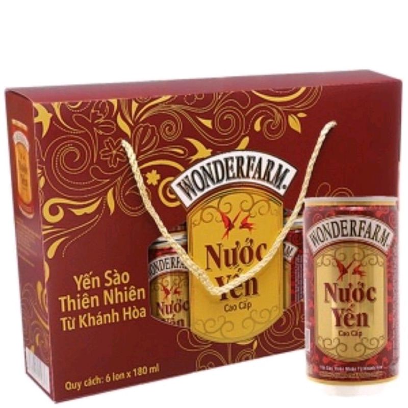 Giá thùng nước yến Wonderfarm 6 lốc (mỗi lốc gồm 6 lon, 240ml mỗi lon) thường dao động khoảng từ 200.000 đến 250.000 đồng tùy nơi bán và chương trình khuyến mãi. Đây là mức giá hợp lý so với chất lượng sản phẩm, đặc biệt khi bạn mua theo thùng hoặc lốc sẽ tiết kiệm hơn so với mua lẻ từng lon.