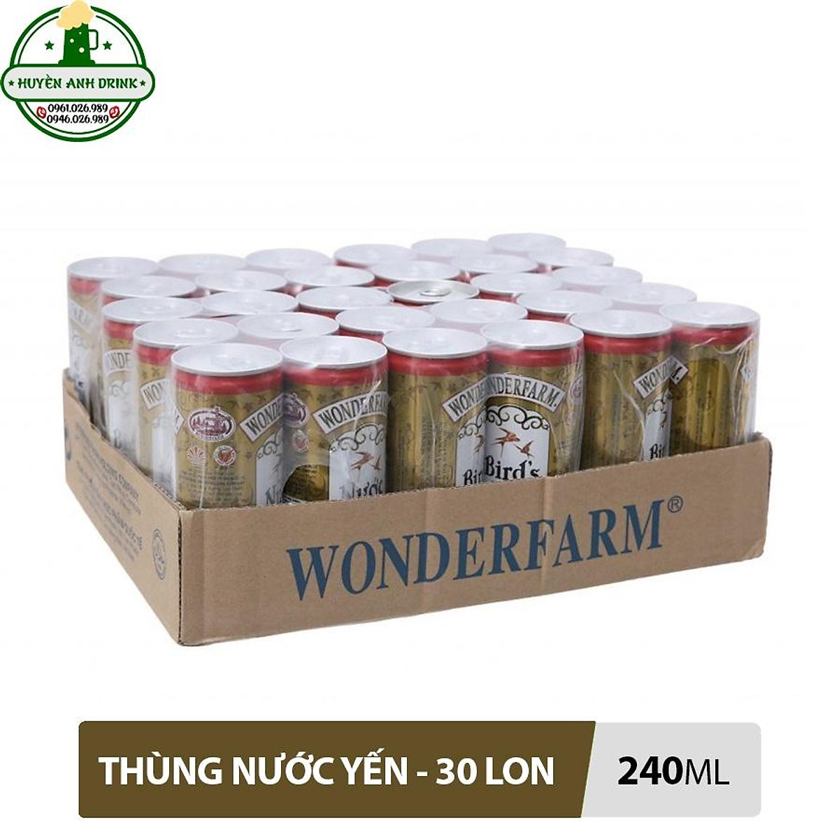 Giá của một thùng nước yến Wonderfarm 240ml (gồm 30 lon) thường dao động trong khoảng từ 165.000 đến 195.000 đồng tùy nơi bán và chương trình khuyến mãi. Mức giá này đã bao gồm VAT nhưng chưa tính phí vận chuyển nếu có.