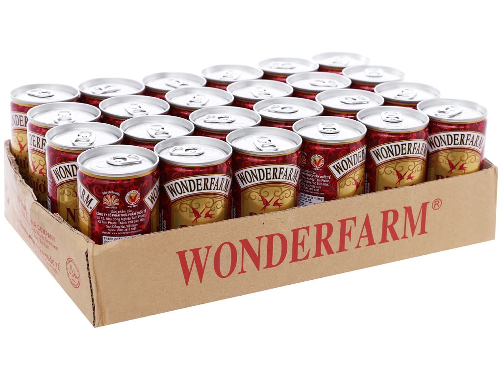 Giá thùng 24 lon nước yến Wonderfarm 240ml hiện dao động khoảng 180.000 đến 190.000 đồng tùy nơi bán, mức giá này đã bao gồm VAT nhưng chưa tính phí vận chuyển. Đây là mức giá khá hợp lý so với chất lượng sản phẩm, đặc biệt khi mua theo thùng sẽ tiết kiệm hơn so với mua lẻ từng lon.