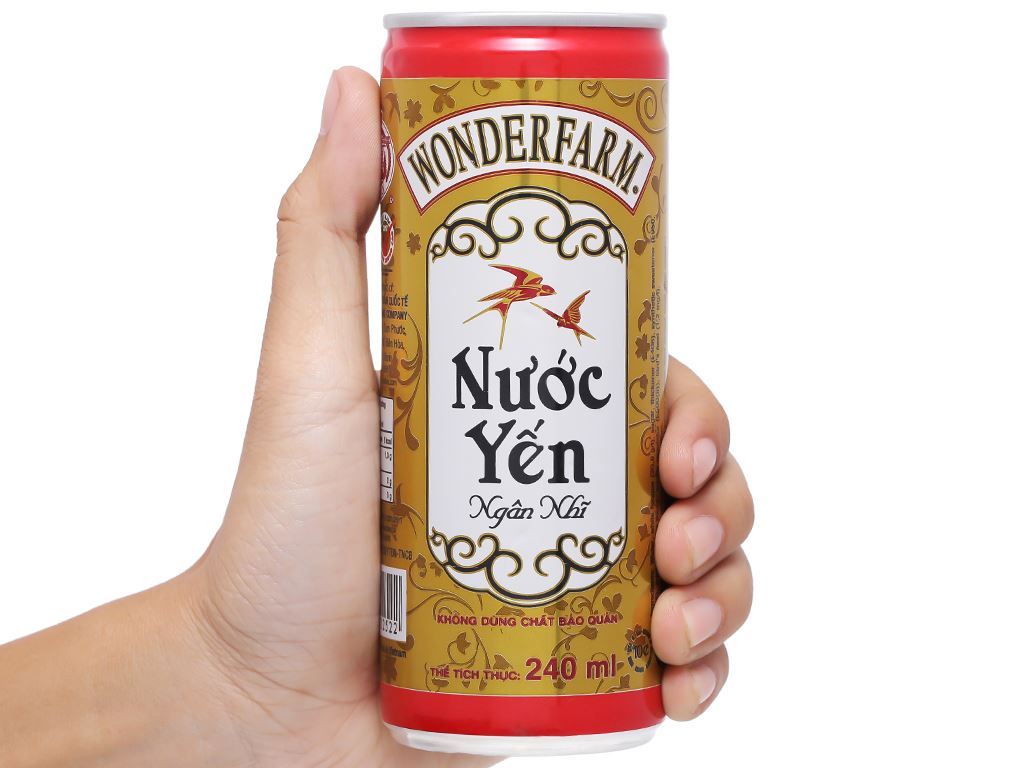 Nước Yến Wonderfarm là một trong những sản phẩm nước yến được nhiều người ưa chuộng nhờ chất lượng cao và hương vị tự nhiên. Về giá cả, nước yến Wonderfarm thường được bán theo lon hoặc theo hộp nhiều lon. Ví dụ, một hộp 6 lon nước yến Wonderfarm cao cấp dung tích 180ml có giá khoảng 66.000 đồng, tức là mỗi lon khoảng 11.000 đồng. Ngoài ra, trên các kênh bán lẻ như Lotte Mart, một lon nước yến Wonderfarm 180ml có giá khoảng 9.300 đồng, còn loại 250ml có thể có mức giá cao hơn chút do dung tích lớn hơn và thành phần yến cao cấp hơn.