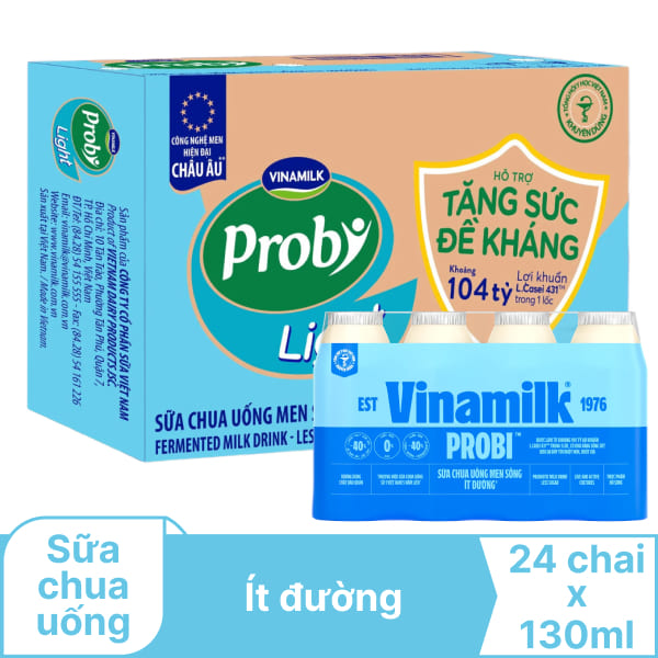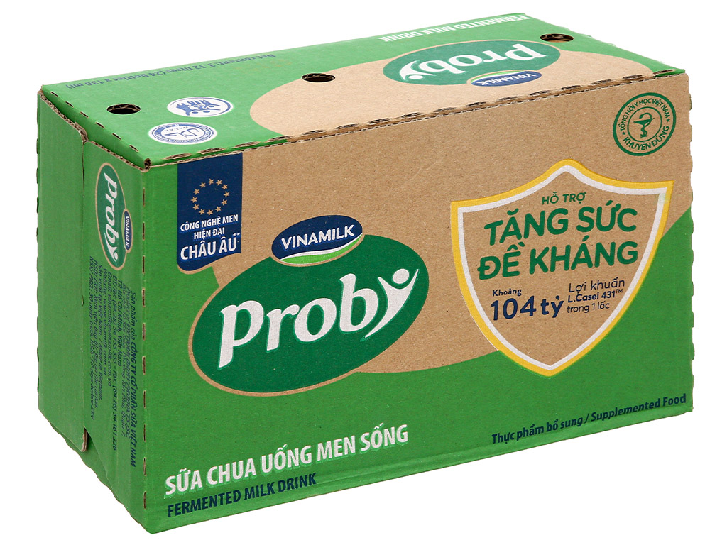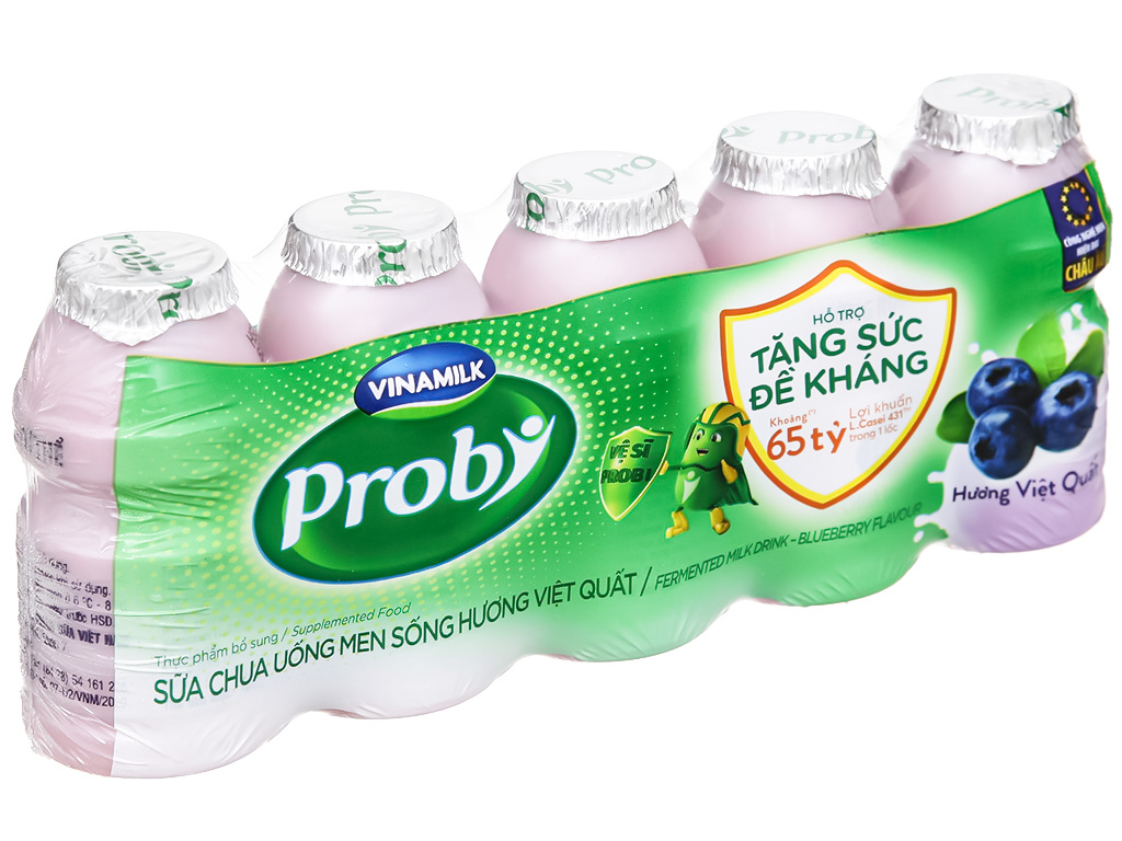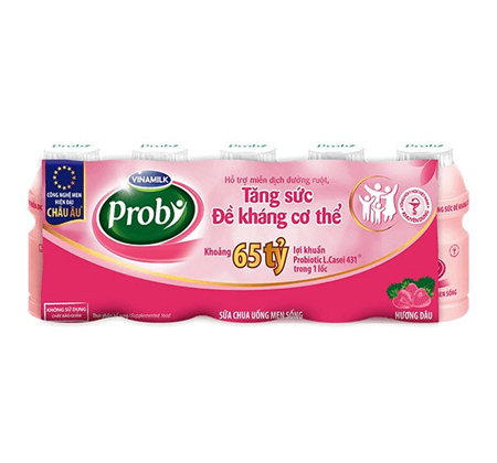 Sữa chua uống Probi của Vinamilk được nhiều người tin dùng vì chứa lợi khuẩn L. Casei 431® giúp hỗ trợ tiêu hóa và tăng cường đề kháng. Sản phẩm có nhiều hương vị như dưa gang, việt quất, dâu,… và phù hợp cho cả trẻ em từ 1 tuổi trở lên.