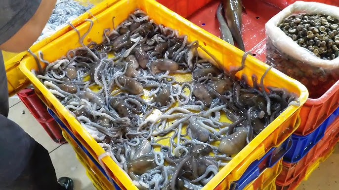 Ngoài bạch tuộc, chợ còn cung cấp nhiều loại hải sản khác như mực nang đông lạnh với giá 250.000 VNĐ cho 2-3 con/kg, hay lươn thiên nhiên với mức giá 180.000 VNĐ cho 3-4 con/kg. Những sản phẩm này không chỉ phong phú mà còn đảm bảo chất lượng cao, đạt tiêu chuẩn vệ sinh an toàn thực phẩm.