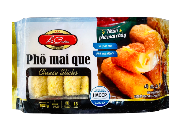 Phô mai que thường được đóng hộp 500g hoặc 700g, rất tiện lợi cho việc bảo quản và chế biến nhanh. Chỉ cần chiên trong dầu nóng khoảng 3-5 phút là có thể thưởng thức ngay món ăn vặt béo ngậy, giòn rụm với phần nhân phô mai tan chảy, kéo sợi hấp dẫn. Nhiều người thích chấm kèm tương cà, tương ớt hoặc mayonnaise để tăng hương vị.