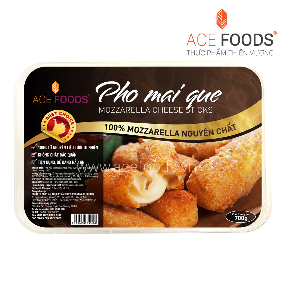 Nếu bạn muốn mua với số lượng lớn hoặc tìm sản phẩm có thêm phô mai Mozzarella kéo sợi béo ngậy, Công ty Thực phẩm Thiên Vương cũng cung cấp phô mai que đóng hộp với giá rất cạnh tranh, khoảng 100.000 đồng cho hộp 20 que 700g, rất phù hợp để dùng trong gia đình hoặc kinh doanh nhỏ lẻ.