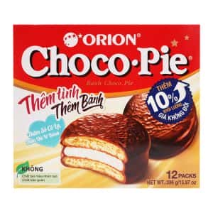 Bánh Chocopie của Orion vốn nổi tiếng với hương vị thơm ngon, mềm ngọt, lớp bánh quy kẹp marshmallow dẻo và phủ socola bên ngoài rất hấp dẫn. Đây cũng là món quà ý nghĩa, thường được dùng để tặng nhau trong dịp lễ, sinh nhật hay đơn giản là để chia sẻ yêu thương trong gia đình. Giá bánh cũng khá ổn định, không tăng nhiều trong nhiều năm qua, nên bạn hoàn toàn yên tâm khi mua số lượng lớn mà không lo giá bị đội lên.