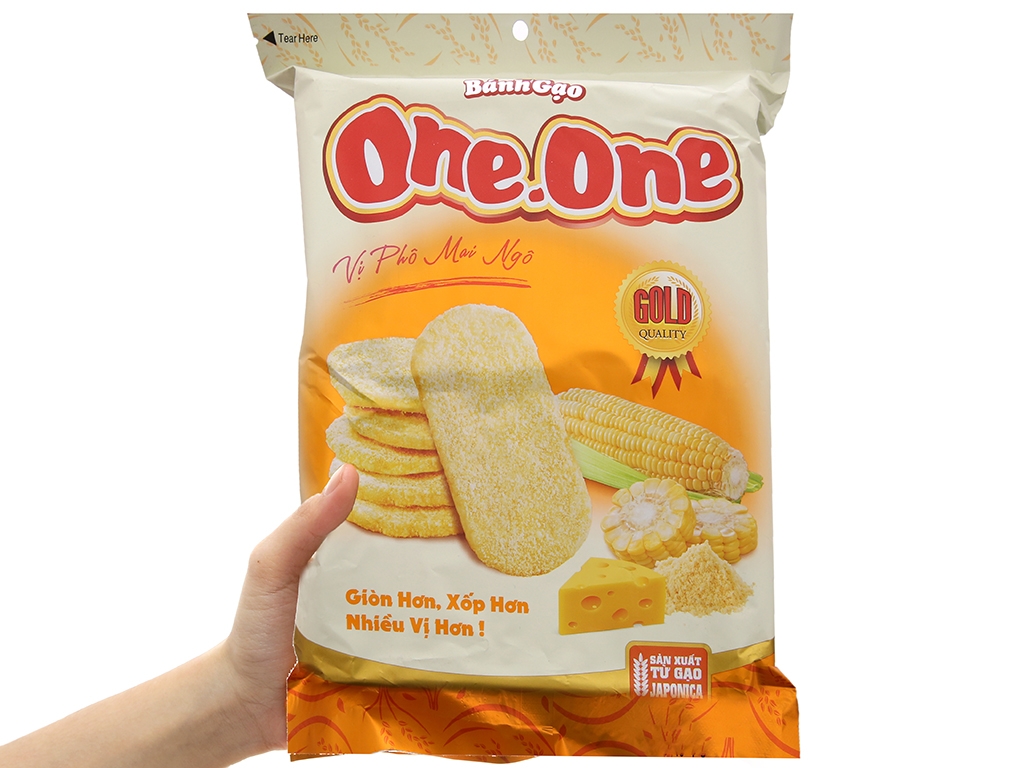 Điều thú vị là bánh gạo One One không chỉ ngon mà còn được sản xuất theo công nghệ hiện đại, không chiên qua dầu nên rất an toàn cho sức khỏe. Sản phẩm giữ được độ giòn tan và hương vị tự nhiên, phù hợp cho nhiều đối tượng từ trẻ nhỏ đến người lớn, thậm chí cả người ăn kiêng hay ăn chay.