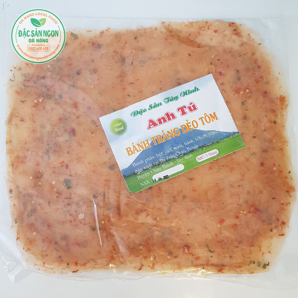 Bánh tráng dẻo tôm Tây Ninh là một món đặc sản nổi tiếng, được nhiều người yêu thích bởi hương vị thơm ngon và độ dẻo vừa phải. Mỗi gói bánh 500gr thường chứa khoảng 8-9 cái, thích hợp để thưởng thức ngay mà không cần chế biến. Với giá chỉ 48.000 đồng, bạn đã có thể mang về một món ăn vặt độc đáo.