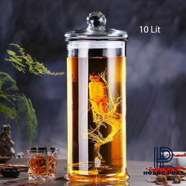 Bình ngâm rượu thủy tinh có dung tích 10 lít rất phù hợp cho gia đình hoặc cơ sở nhỏ. Với cấu trúc dày dạn và chắc chắn, bình sẽ hạn chế tối đa tình trạng nứt vỡ khi va chạm. Nhiều loại bình còn được thiết kế có vòi tiện lợi, giúp bạn dễ dàng rót rượu, các loại thảo dược cũng như dược liệu như sâm hay chuối hột cũng rất thích hợp để ngâm trong bình này.