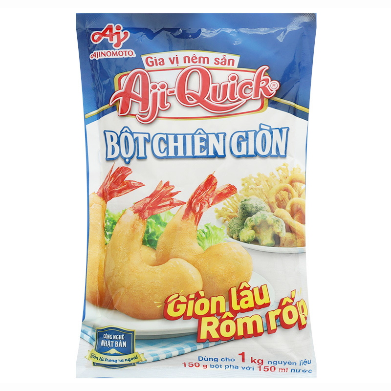 Bột Aji Quick được pha trộn sẵn gia vị, nên khi sử dụng bạn chỉ cần nhúng nguyên liệu qua bột đã pha với nước là có thể chiên ngay, lớp vỏ ngoài giòn tan mà bên trong vẫn giữ được độ mềm, ngọt tự nhiên của thực phẩm. Đây là lựa chọn lý tưởng cho những ai thích các món chiên nhưng không muốn mất nhiều công sức chuẩn bị.