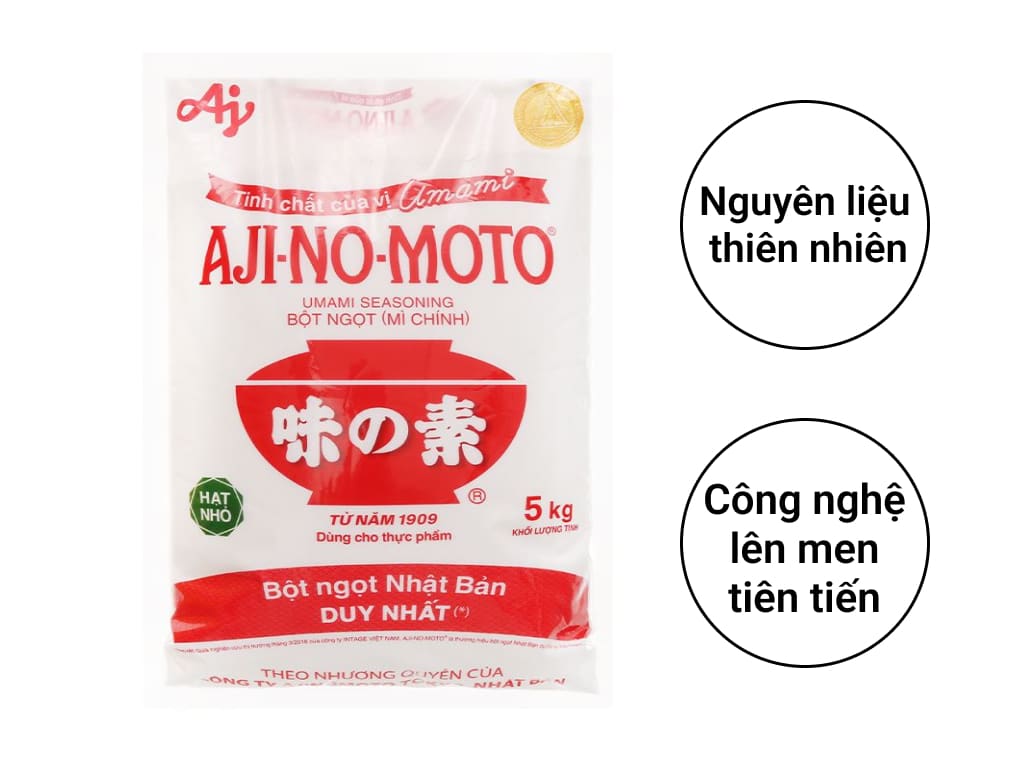 Bột ngọt Ajinomoto là sản phẩm nổi tiếng, được làm từ muối natri của axit glutamic – một loại axit amin tự nhiên có trong nhiều thực phẩm hàng ngày như thịt, cá, trứng và rau củ. Đây chính là thành phần tạo nên vị umami đặc trưng, giúp món ăn đậm đà và ngon miệng hơn. Ajinomoto cũng có nhiều loại bột ngọt khác nhau, từ hạt nhỏ đến hạt lớn, phù hợp với nhu cầu đa dạng của người tiêu dùng và các nhà hàng.