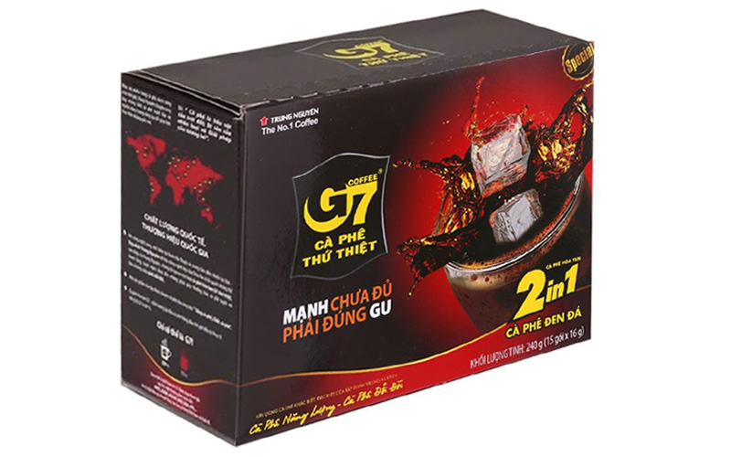 Cà phê đen Trung Nguyên là một lựa chọn quen thuộc và được nhiều người yêu thích nhờ hương vị đậm đà, giữ được vị đắng thật của cà phê rang xay truyền thống. Đặc biệt, dòng cà phê hòa tan G7 2in1 đen đá của Trung Nguyên rất được ưa chuộng vì tiện lợi và vẫn giữ được chất lượng cà phê nguyên bản, phù hợp với gu uống cà phê đen của người Việt.