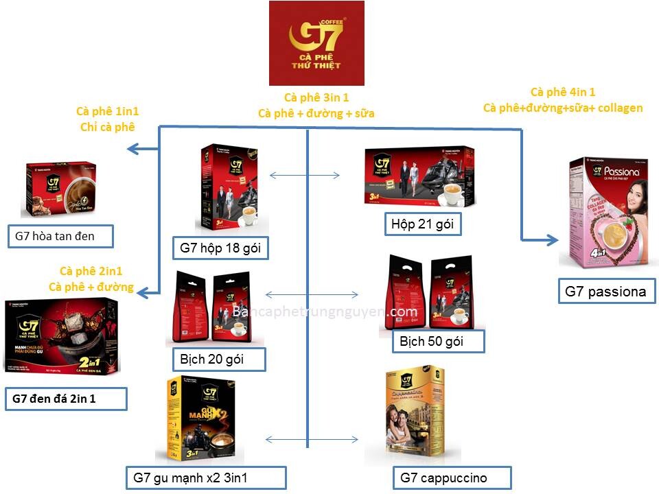 Cà phê G7 3in1 là một lựa chọn phổ biến vì sự tiện lợi và hương vị đặc trưng. Nó được chiết xuất từ những hạt cà phê chất lượng cao, kết hợp với công nghệ sản xuất hiện đại để tạo ra hương vị độc đáo. Ngoài ra, cà phê G7 còn có các dòng sản phẩm khác như Cappuccino và cà phê hòa tan đen, đáp ứng nhu cầu đa dạng của người tiêu dùng.