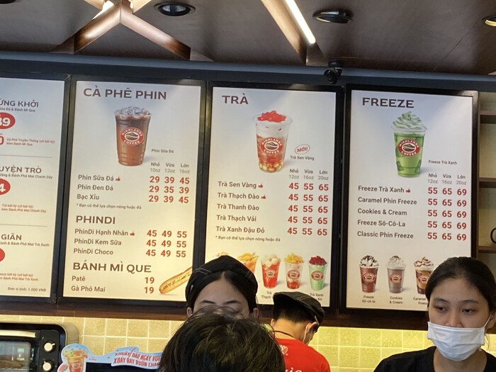 Trong khi đó, Starbucks lại định vị ở phân khúc cao cấp hơn với giá một ly cà phê như Tall Latte quy đổi khoảng 3,42 USD, tức là cao hơn cả ở Mỹ – quê hương của Starbucks. Giá này phản ánh chi phí đầu tư cho không gian sang trọng, dịch vụ chuẩn quốc tế và nguyên liệu cà phê chất lượng cao. Starbucks còn nổi bật với các tiện ích như wifi miễn phí, điều hòa, dịch vụ ghi tên khách hàng lên ly và chương trình thẻ thành viên tích điểm ưu đãi.