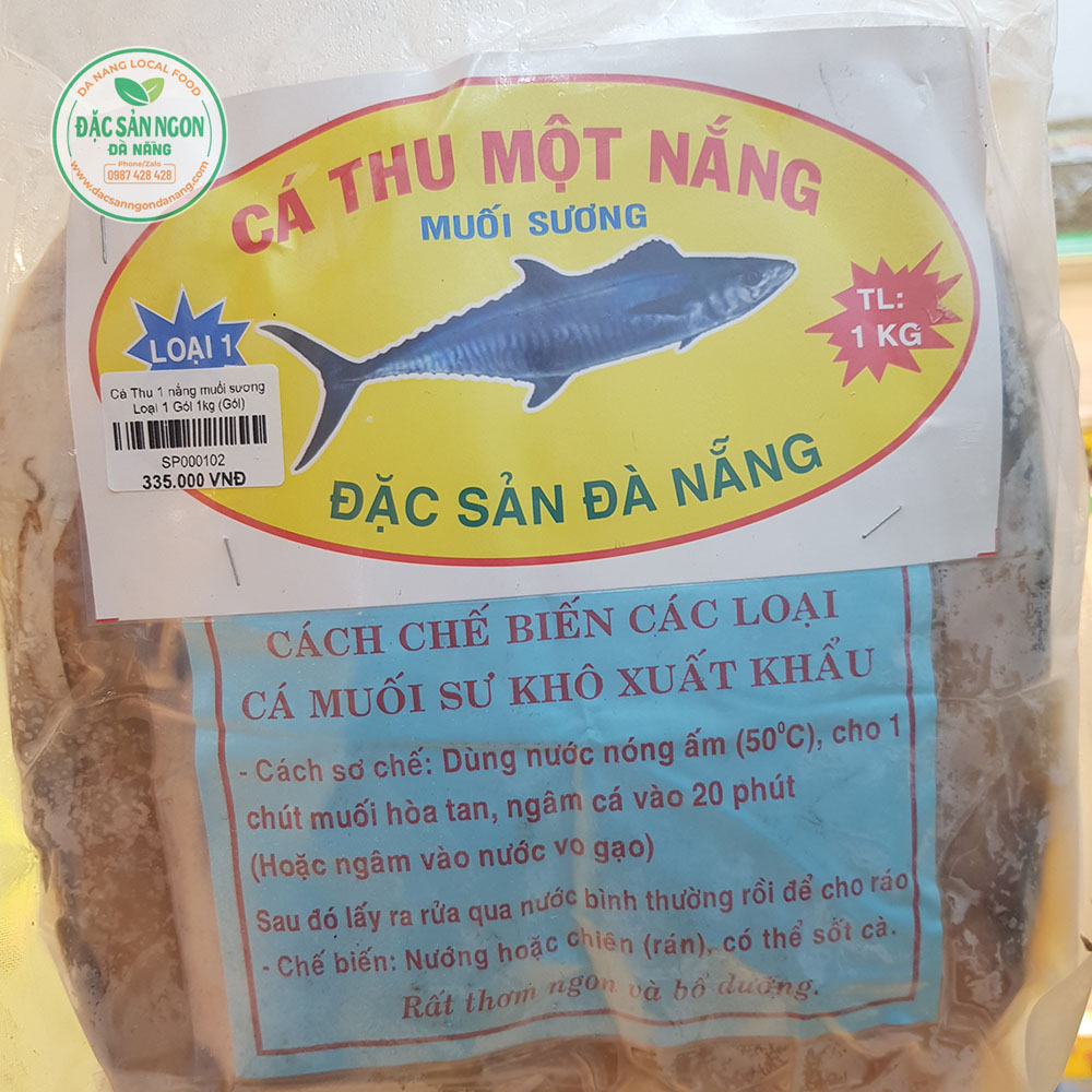 Cá thu một nắng là đặc sản được nhiều người yêu thích bởi hương vị đậm đà, dễ chế biến thành nhiều món như gỏi cá thu, cá thu chiên hay kho thơm. Ngoài ra, cá thu cắt khoanh tẩm gia vị phơi héo cũng là một lựa chọn phổ biến với giá mềm hơn, khoảng 160.000 đồng/kg. Sản phẩm này thường được sản xuất tại các vùng biển như Bình Định và được đóng gói hút chân không để bảo quản tốt hơn.