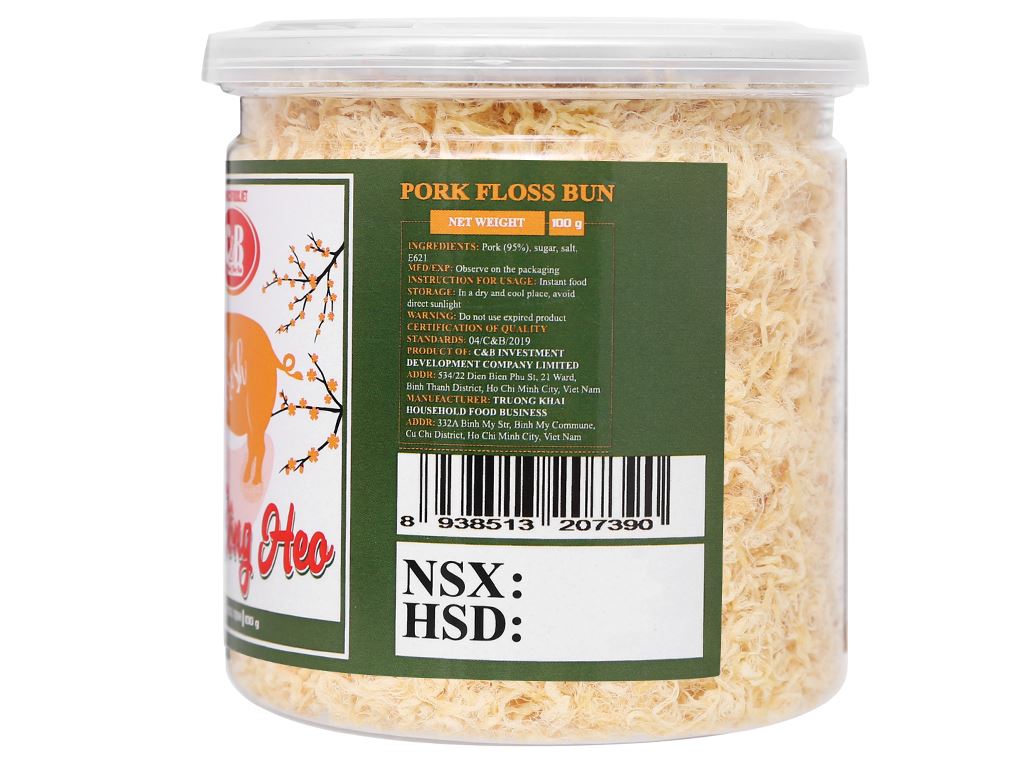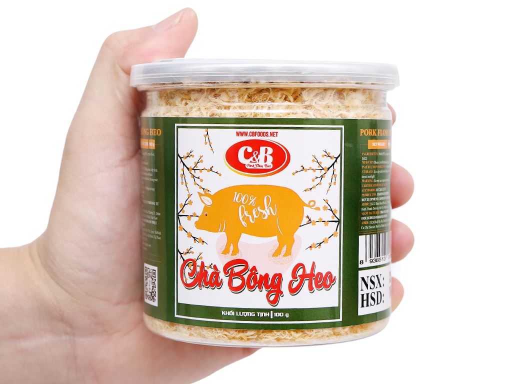 Ngoài ra, bạn cũng có thể ghé các siêu thị lớn như Bách Hoá Xanh, nơi cung cấp chà bông heo đóng hộp với nguồn gốc rõ ràng, đảm bảo an toàn vệ sinh thực phẩm và giá cả phải chăng. Ví dụ, chà bông heo C&B tại đây có giá khoảng 51.000 – 75.000 đồng cho hộp 100g đến 150g, rất phù hợp cho nhu cầu sử dụng hàng ngày.