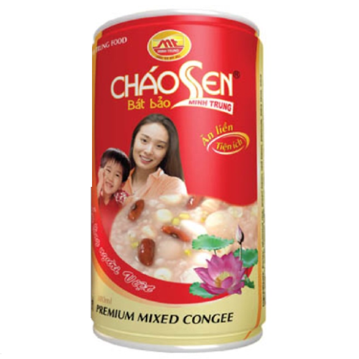 Cháo Sen Bát Bảo Minh Trung là một món ăn bổ dưỡng được làm từ 8 loại ngũ cốc chọn lọc như gạo nếp, gạo nếp cẩm, đậu xanh, long nhãn, hạt sen, đỗ đỏ, ý dĩ và lạc nhân. Sản phẩm không chỉ thơm ngon mà còn rất tốt cho sức khỏe, giúp bồi bổ cơ thể, hỗ trợ tiêu hóa và giải nhiệt hiệu quả, đặc biệt phù hợp cho những người mới ốm dậy hoặc cần tăng cường sức khỏe.