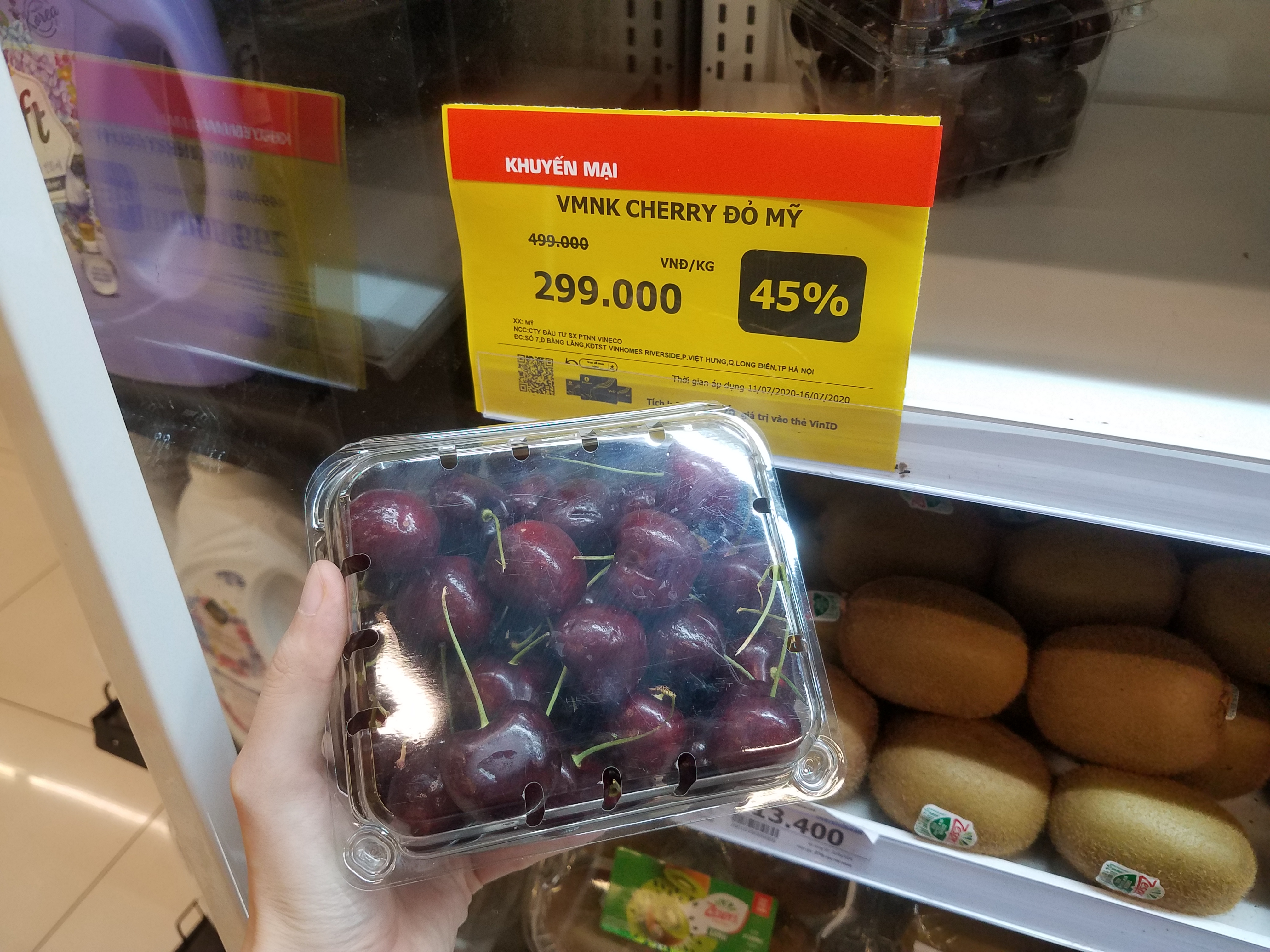 Mình vừa có một trải nghiệm thú vị khi mua cherry tại VinMart. Hiện tại, giá bán rất hấp dẫn, chỉ 299.000đ/kg cho cherry đỏ Mỹ nhập khẩu từ giờ đến 2/8/2020. Đến siêu thị, mình thấy cherry tươi ngon, quả nào quả nấy đều căng mẩy và không bị mềm nhũn. Một mẹo hay là hãy dùng tay bóp nhẹ vào quả cherry, nếu cảm thấy dày mình và rắn chắc thì chắc chắn đó là hàng còn tươi.