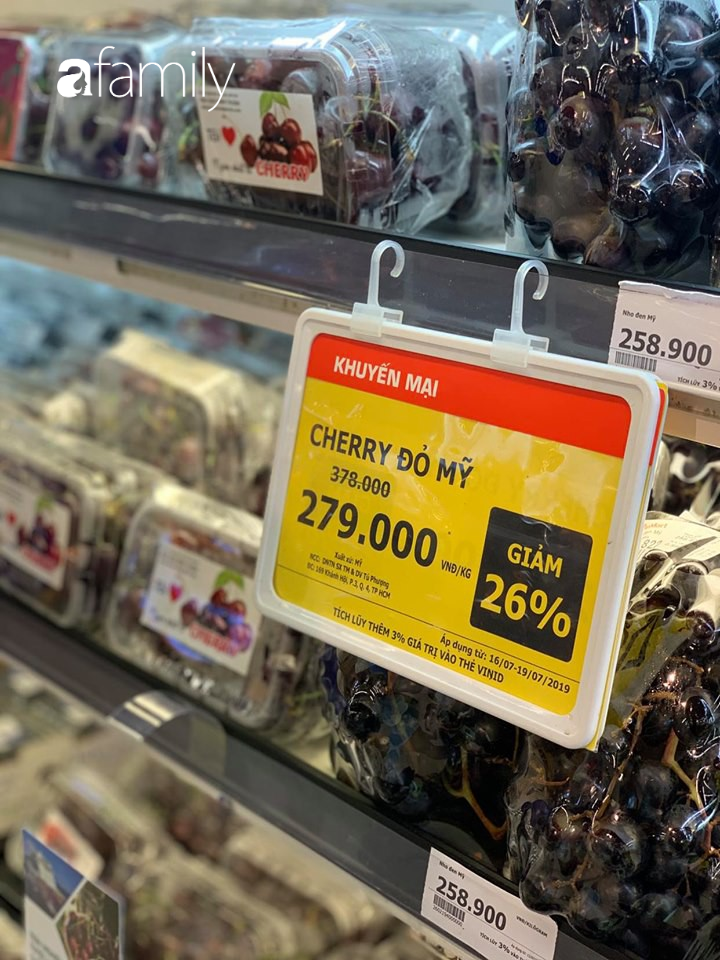 Trong khi đó, các siêu thị cao cấp như Farmers Market hay Tops Market cũng có chương trình giảm giá cherry Mỹ từ 20-40%, với giá cherry size 9,5 chỉ còn khoảng 329.000 đồng/kg, thậm chí có nơi giảm xuống còn 299.000 đồng/kg cho size 10. Tuy nhiên, ở những siêu thị này, giá cherry thường cao hơn Vinmart một chút khi không có khuyến mãi, do họ tập trung vào chất lượng và trải nghiệm mua sắm cao cấp hơn.