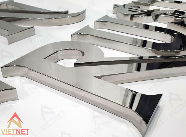 Trong đó, cắt CNC sắc nét giúp cho các chi tiết được hình thành một cách hoàn hảo. Chữ inox có thể được làm với nhiều loại mặt như inox trắng xước, vàng gương, hay chữ nổi inox mặt mica. Điều đặc biệt là việc kết hợp thêm đèn LED bên trong chữ, tạo ra hiệu ứng ánh sáng nổi bật, thu hút sự chú ý của mọi người.