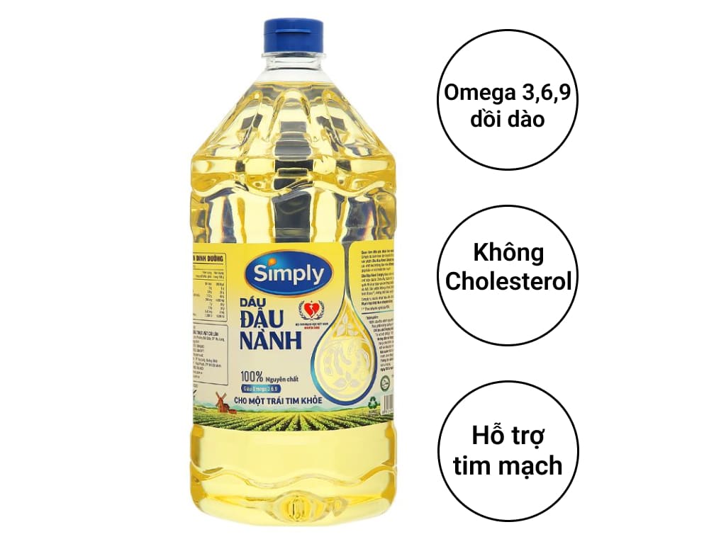 Dầu Ăn Simply 2L là lựa chọn phổ biến trong nhiều gia đình nhờ chất lượng tốt và giá cả hợp lý. Sản phẩm được làm từ những hạt đậu nành nguyên chất, có nguồn gốc từ châu Mỹ, giúp giảm cholesterol xấu và bổ sung các loại Omega 3, 6, 9 rất có lợi cho sức khỏe, đặc biệt là tim mạch và sự phát triển não bộ. Dầu có màu sáng, mùi nhẹ, phù hợp cho nhiều món ăn hàng ngày.