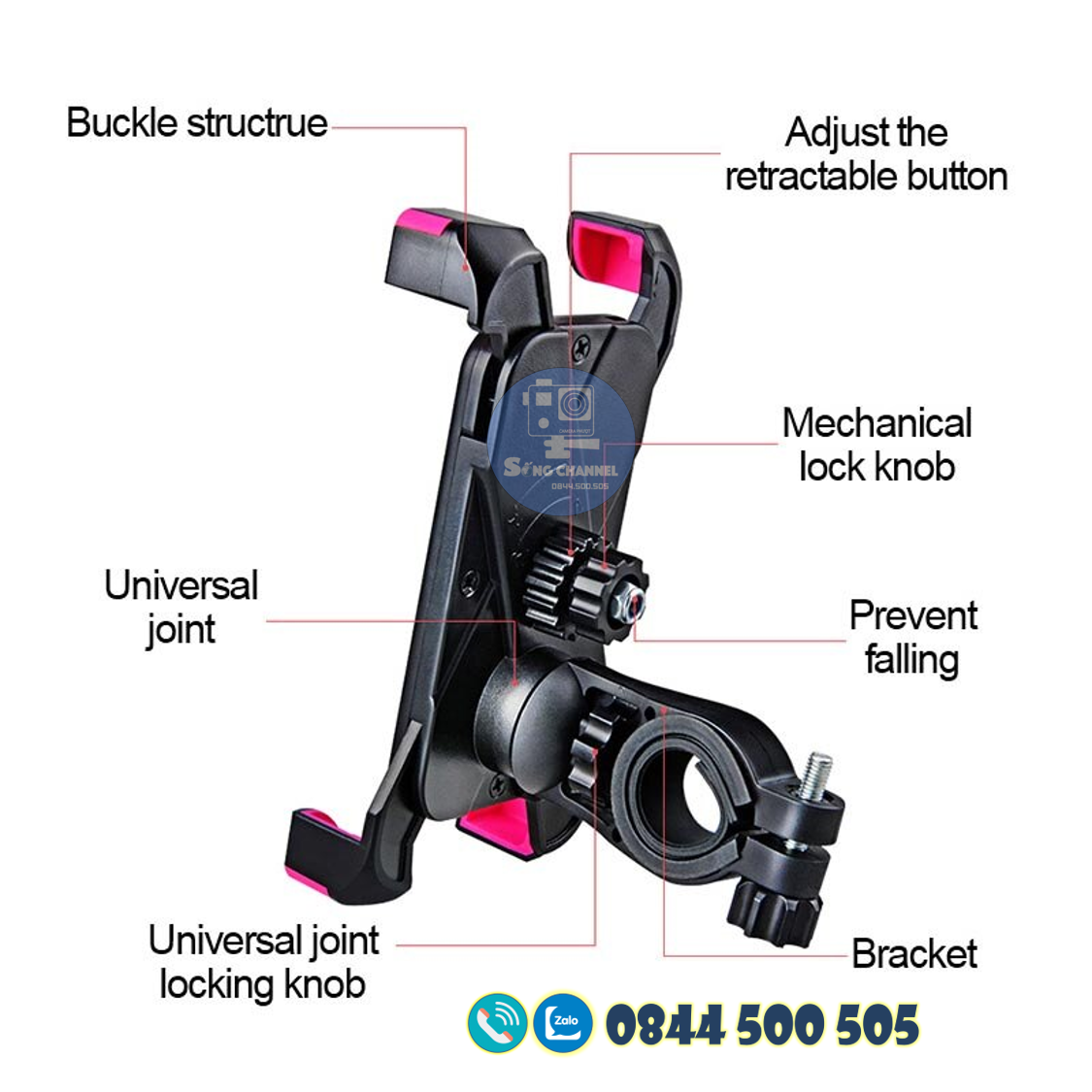 Thiết kế của giá đỡ rất chắc chắn, khung nhôm phối hợp cùng với cao su chống trầy giúp bảo vệ điện thoại của bạn một cách an toàn. Bệ đỡ dễ dàng điều chỉnh, cho phép bạn xoay ngang và dọc mà không gặp bất kỳ khó khăn nào. Thêm vào đó, pa đ mở rộng còn được gắn ở phía trước potang xe đạp, tạo không gian để treo đèn, đồng hồ hay camera hành trình.