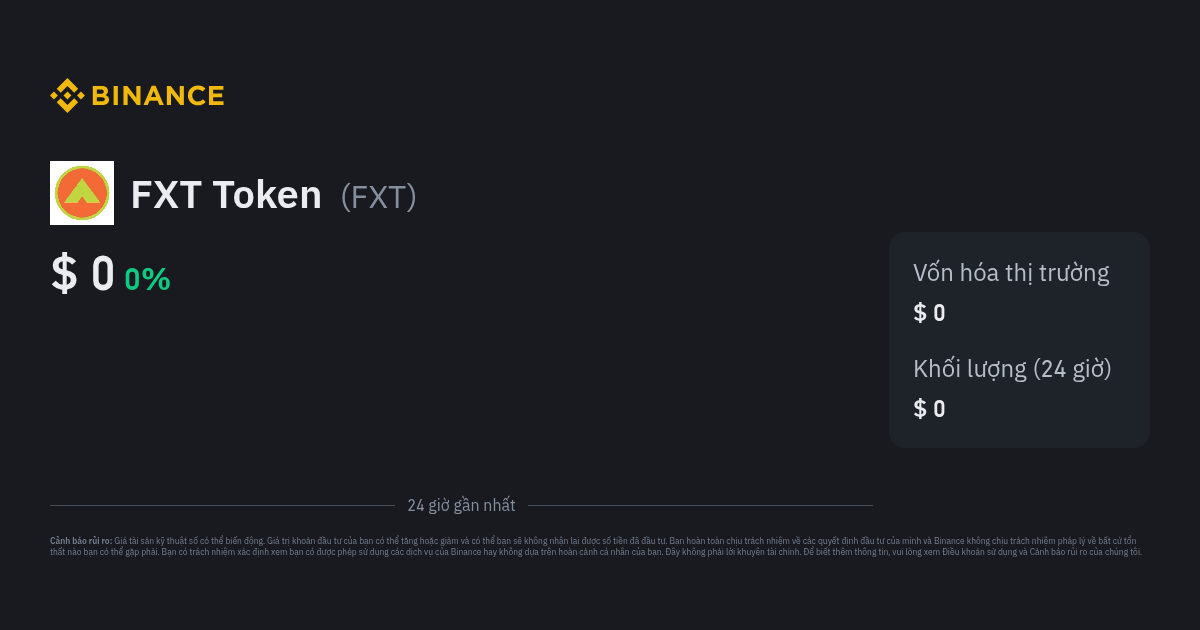 Giá đồng FXT Token hôm nay rất thấp và gần như không có biến động đáng kể. Theo dữ liệu mới nhất, 1 FXT Token có giá khoảng 0,000014 USD, tương đương gần như bằng 0 đồng Việt Nam, và trong 24 giờ qua giá không thay đổi nhiều. Điều này phản ánh thực tế rằng FXT Token hiện không được giao dịch sôi động, khối lượng giao dịch gần như bằng 0.