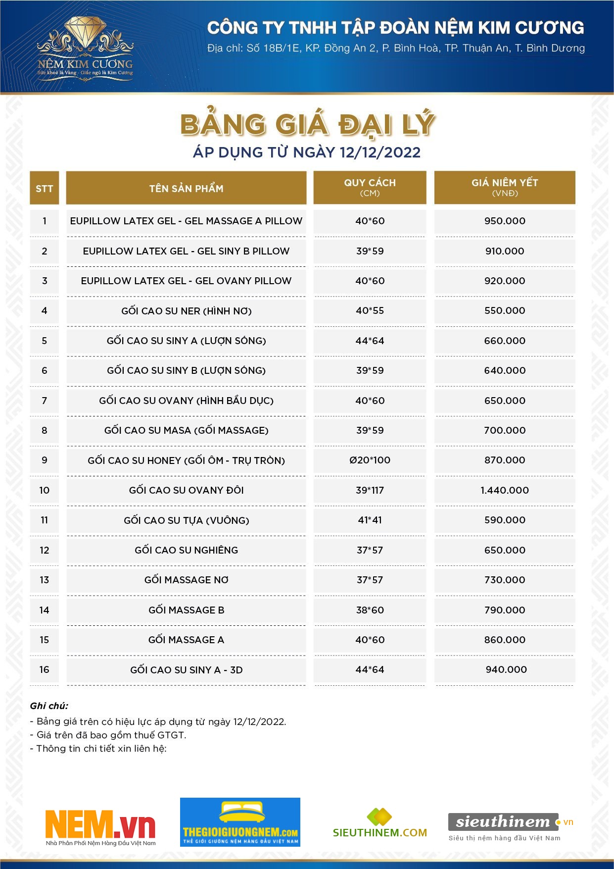 Nếu bạn đang tìm một chiếc gối vừa bền vừa thoải mái, gối Kim Cương là một lựa chọn đáng cân nhắc. Bảng giá linh hoạt cùng các chương trình khuyến mãi cũng giúp bạn dễ dàng sở hữu sản phẩm phù hợp với ngân sách của mình.
