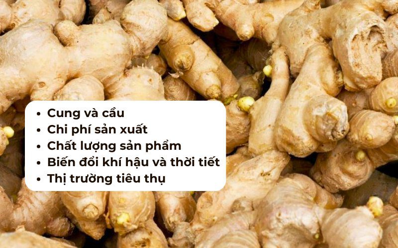 Giá gừng tươi chịu ảnh hưởng bởi nhiều yếu tố khác nhau, trong đó nguồn cung và nhu cầu thị trường là hai yếu tố quan trọng nhất. Khi nguồn gừng trong nước khan hiếm, đặc biệt là vào những thời điểm chưa vào vụ thu hoạch ở nhiều địa phương, giá gừng thường tăng mạnh. Ví dụ, tại Nghệ An, giá gừng đã tăng từ vài nghìn đồng lên đến 30.000 đồng/kg do nguồn hàng khan hiếm và nhu cầu xuất khẩu lớn.