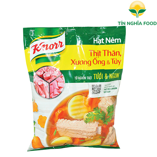 Sản phẩm hạt nêm Knorr loại thịt thăn, xương ống, tủy này được làm từ nguyên liệu thịt và xương tươi ngon, chuẩn VietGAP, giúp món ăn thêm đậm đà, ngọt tự nhiên mà vẫn đảm bảo an toàn sức khỏe. Hạt nêm có thể dùng để nêm canh, kho, xào, rất tiện lợi trong bữa ăn gia đình hàng ngày.