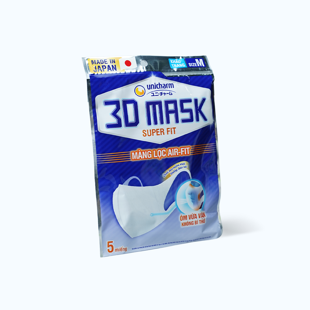 Khẩu trang 3D Unicharm là một trong những sản phẩm được nhiều người tin dùng nhờ thiết kế ôm sát khuôn mặt, thoải mái và khả năng lọc bụi, vi khuẩn hiệu quả. Sản phẩm này có cấu tạo 3 lớp, giúp ngăn ngừa bụi mịn, phấn hoa và vi khuẩn, đồng thời chất liệu mềm mại, không gây kích ứng da, rất phù hợp cho những ai có làn da nhạy cảm.
