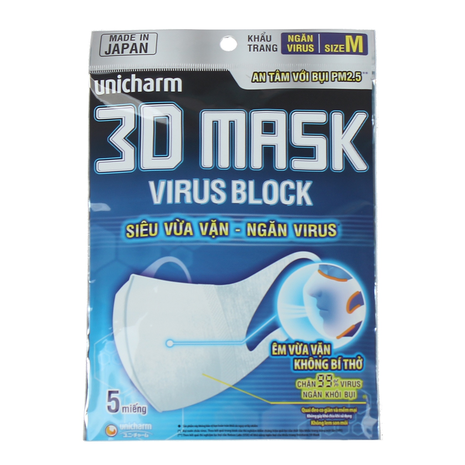 Khẩu trang 3D Unicharm là sản phẩm khẩu trang đến từ Nhật Bản, nổi tiếng với thiết kế 3D ôm sát khuôn mặt, mang lại cảm giác thoải mái và dễ chịu khi đeo lâu. Sản phẩm có cấu trúc lọc đa lớp giúp ngăn chặn bụi mịn, phấn hoa, vi khuẩn và virus hiệu quả, bảo vệ hệ hô hấp rất tốt.