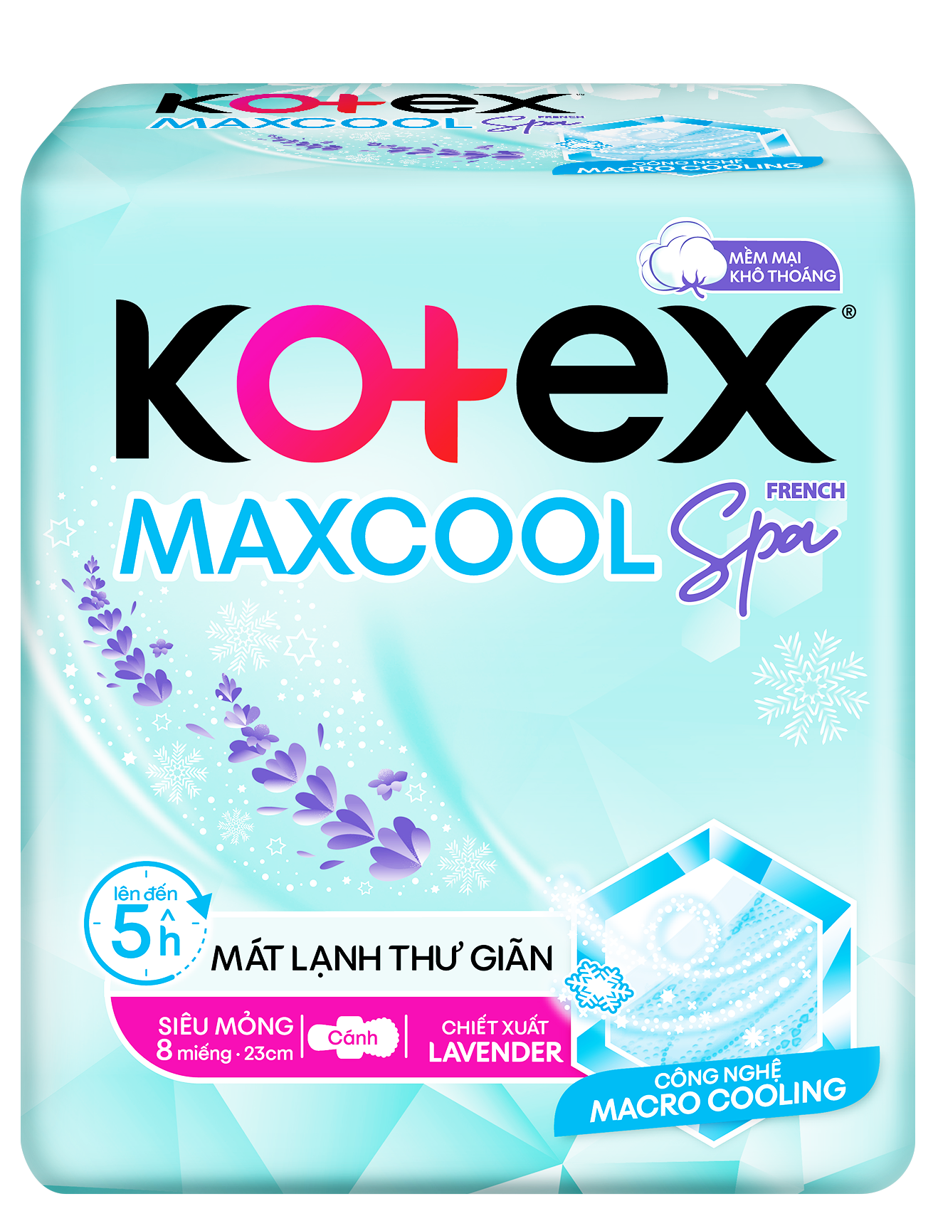 Kotex Cool Fresh nổi bật với công nghệ Macro Cooling đột phá, mang lại cảm giác mát lạnh dễ chịu kéo dài đến 4-5 giờ, giúp bạn thoải mái và tự tin suốt ngày đèn đỏ, đặc biệt là trong những ngày oi bức. Sản phẩm có hàng triệu phân tử làm mát đối lưu liên tục, giúp giảm cảm giác bí bách và khó chịu thường gặp khi dùng băng vệ sinh thông thường.