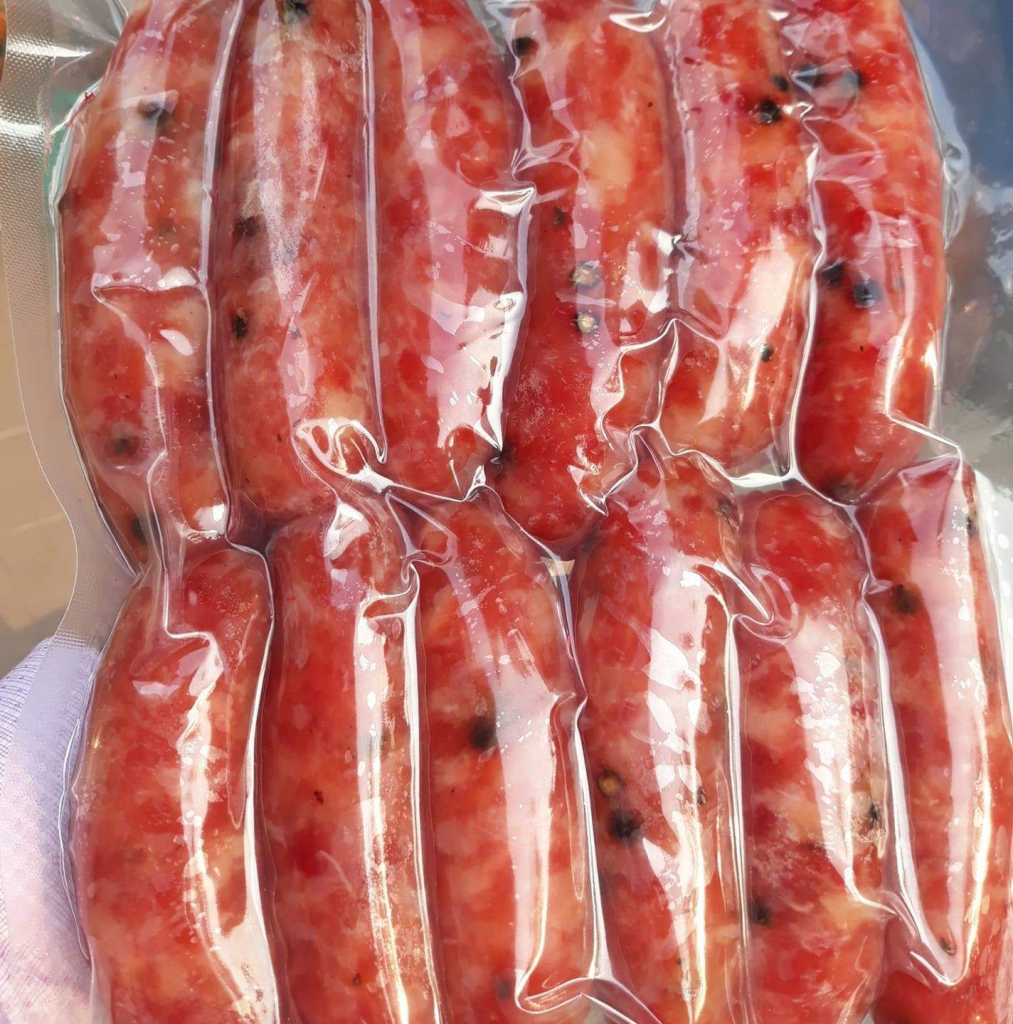 Lạp xưởng tươi thường có màu đỏ hồng đặc trưng, bên trong có các hạt tiêu lấm tấm, khi sờ vào có cảm giác mềm, đàn hồi nhẹ, khác với lạp xưởng khô. Sản phẩm này được đóng gói hoặc cột thành từng xâu, rất tiện lợi cho việc bảo quản và chế biến. Người dùng có thể dễ dàng tìm mua lạp xưởng tươi tại các chợ, siêu thị hoặc cửa hàng thực phẩm với mức giá khá hợp lý.