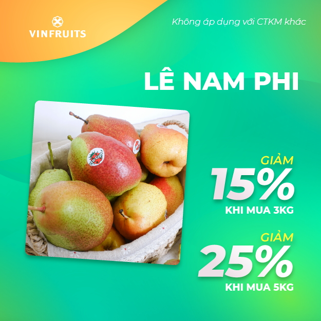 Với màu sắc bắt mắt và chất lượng đảm bảo, lê Nam Phi cũng rất tốt cho sức khỏe nhờ vào hàm lượng chất xơ phong phú. Vậy còn chần chờ gì nữa, hãy đến VinMart hoặc tham khảo hotline để được tư vấn và mua ngay nhé!