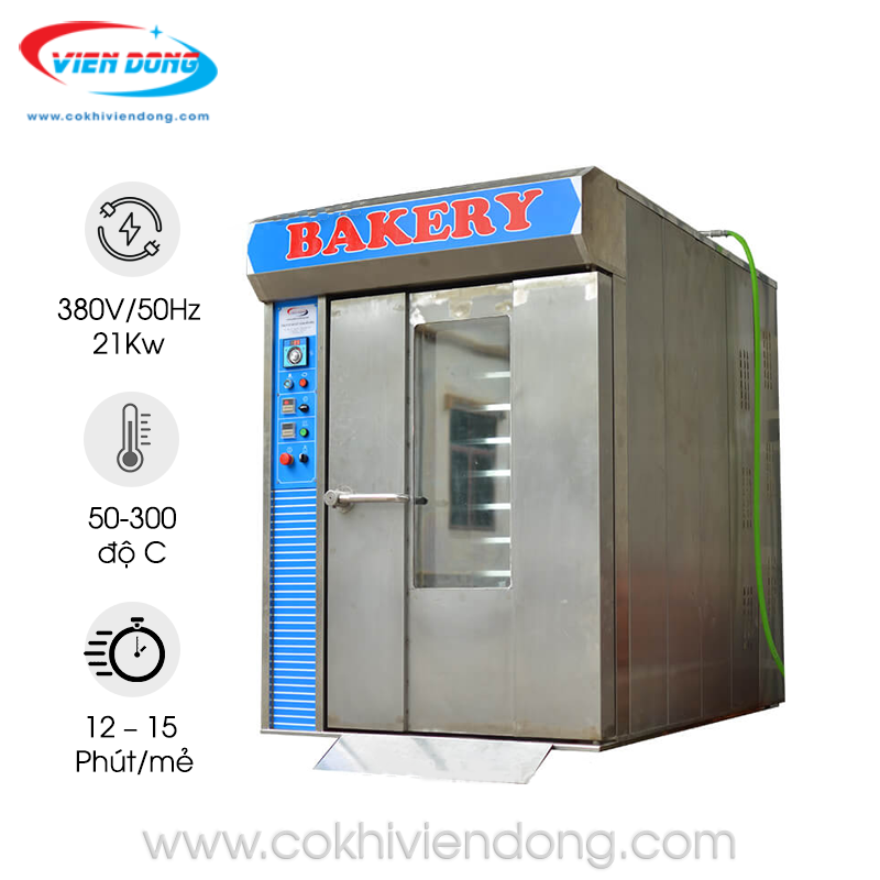 Nếu bạn đang tìm kiếm một lò nướng bánh mì đa năng và hiệu quả cho cơ sở sản xuất của mình, thì lò nướng bánh mì xoay 8 khay sẽ là lựa chọn tuyệt vời. Với khả năng nướng từ 80 đến 120 chiếc bánh mỗi mẻ trong thời gian chỉ khoảng 15-17 phút, sản phẩm này thật sự tiết kiệm thời gian cho người làm bánh.