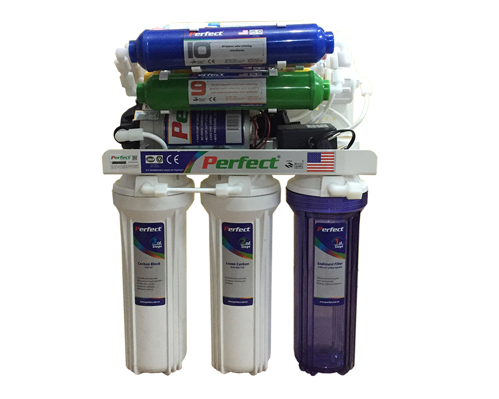 Máy lọc nước Perfect với 10 lõi lọc là một trong những sản phẩm nổi bật hiện nay, được nhập khẩu từ Đài Loan với phần vỏ sản xuất tại Việt Nam. Điểm thu hút đầu tiên chính là công nghệ lọc tiên tiến với màng R.O. Dow, giúp loại bỏ tạp chất và đem lại nguồn nước tinh khiết.