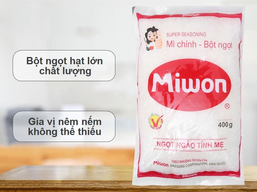 Ngoài ra, mì chính Miwon còn có dạng hạt lớn giúp dễ dàng điều chỉnh lượng dùng, phù hợp với nhiều món ăn khác nhau, từ canh, xào đến nướng. Nhìn chung, nếu bạn đang tìm một loại mì chính vừa túi tiền, chất lượng ổn định, mì chính Miwon 400g là lựa chọn đáng cân nhắc.