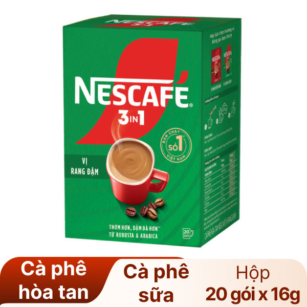 Với sự kết hợp hoàn hảo giữa Robusta và Arabica, Nescafé 3 in 1 là lựa chọn lý tưởng cho bất kỳ tín đồ cà phê nào!