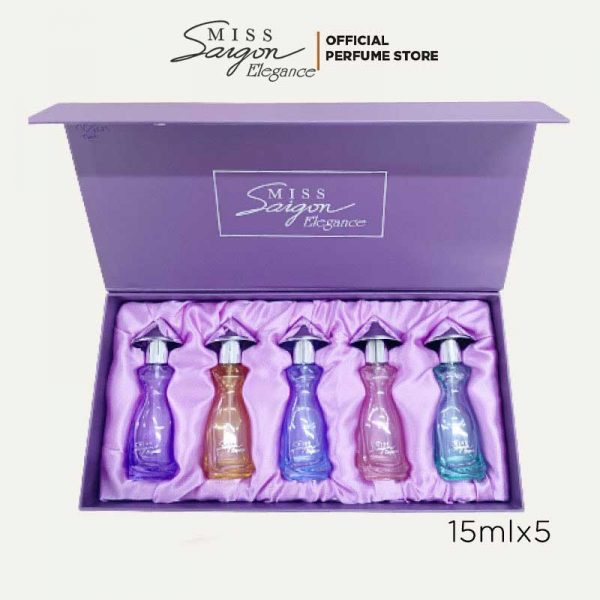 Ngoài ra, bộ nước hoa Miss Saigon Elegance 15ml (5 chai) cũng là một lựa chọn tuyệt vời với giá từ 1.150.000₫ chỉ còn 899.000₫. Điều này giúp người tiêu dùng dễ dàng sở hữu nhiều mùi hương khác nhau, phục vụ cho từng dịp hay tâm trạng.